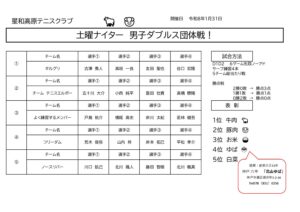 星和高原テニスクラブHOME » 大会結果 » 令和8年1月31日 男子ダブルス団体戦 試合結果 » 令和8年1月31日 男子ダブルス団体戦 試合結果