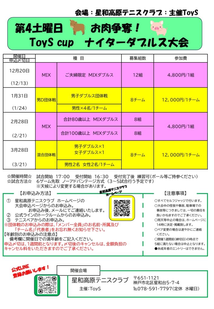土曜日ナイター 男子ダブルス・MIXダブルス(12~3月) 大会要項掲載!